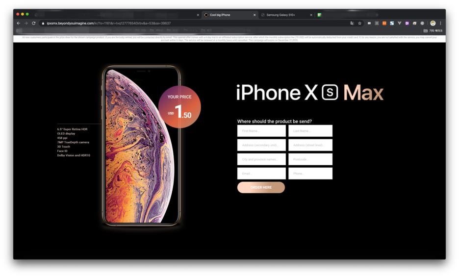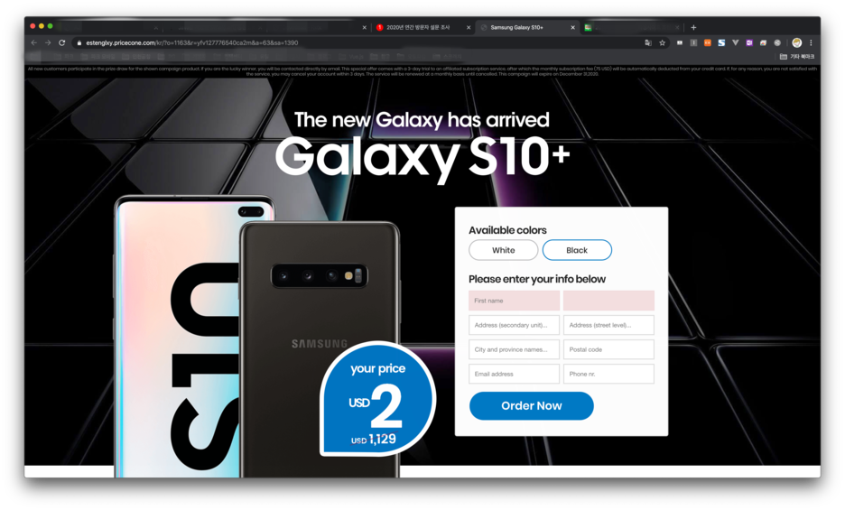 화면을 넘어가보니...인적 사항을 적으라고 나옵니다. $1,129 짜리를 단돈 $2 에 주겠다며...