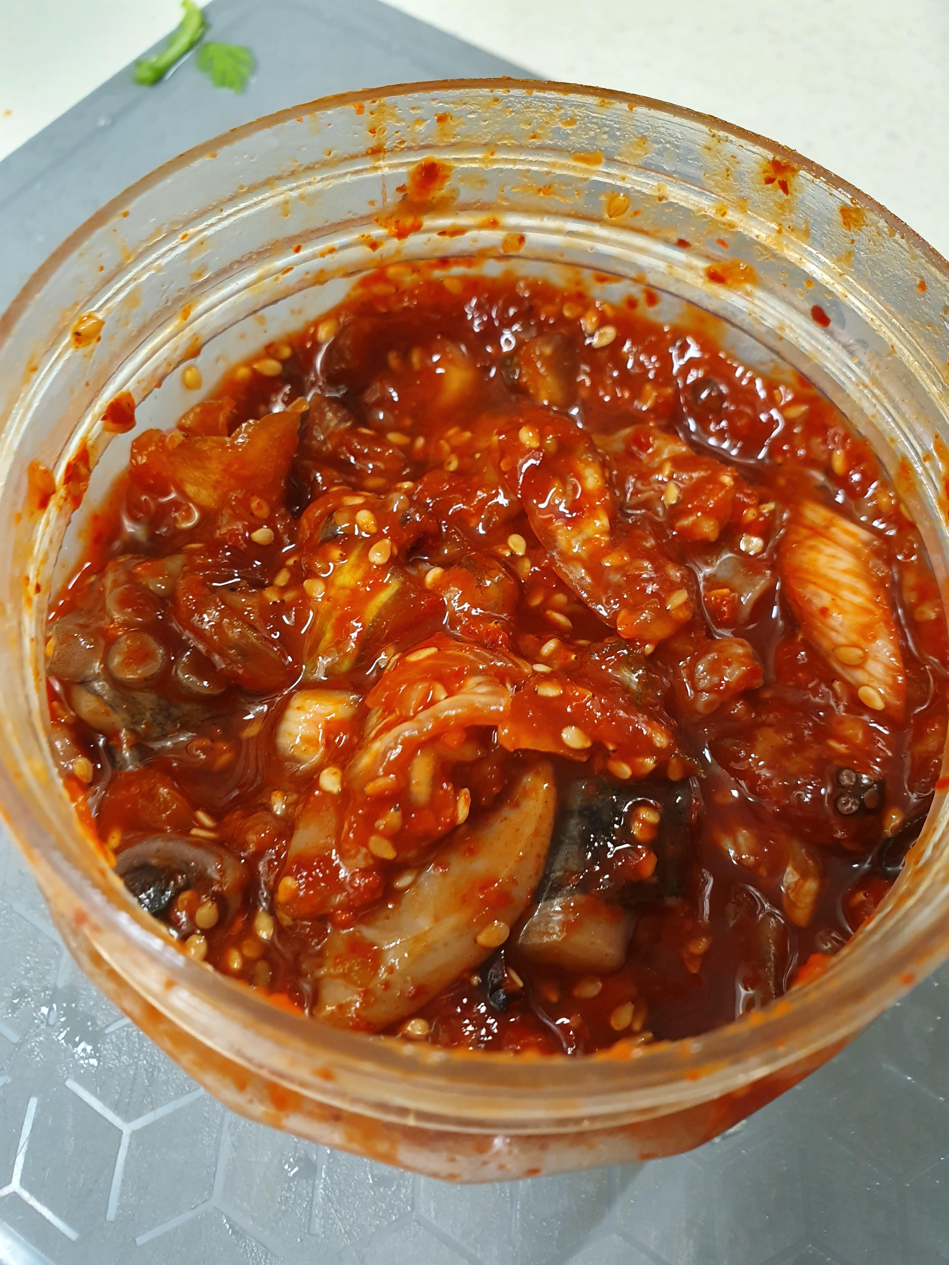 냉장고안에 있던 젓갈을 꺼내보았습니다.