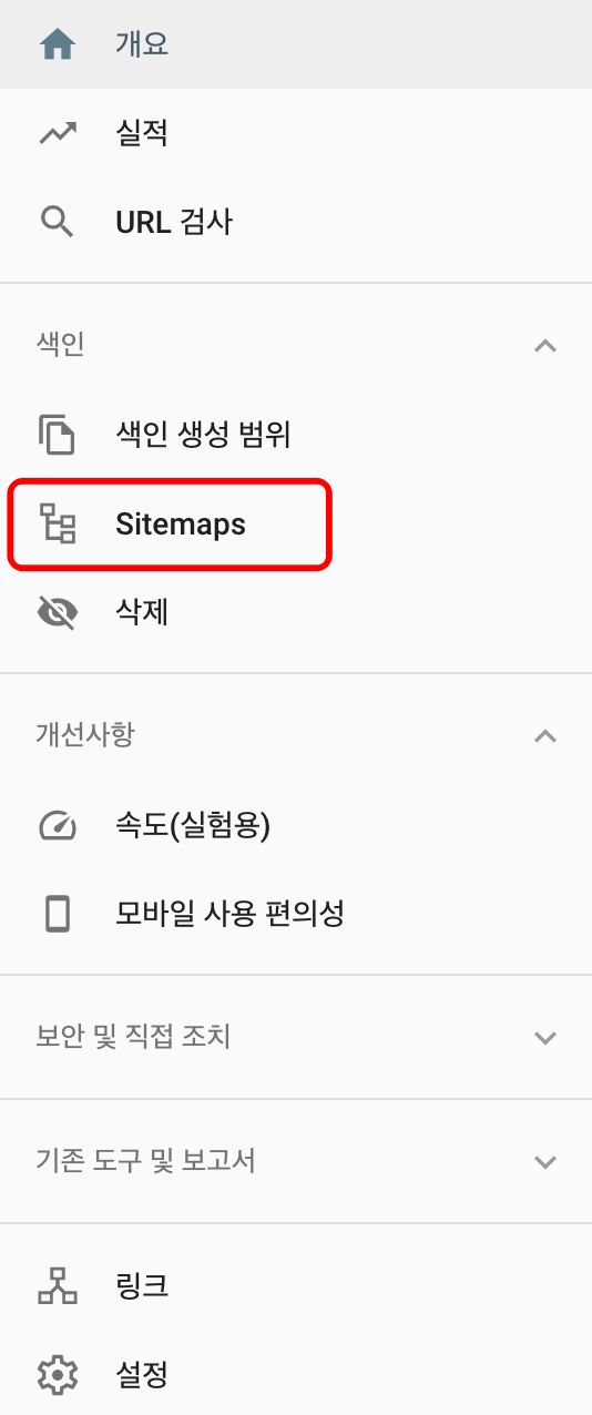 들어가보시면 위와 같이 Sitemaps 메뉴가 있습니다.