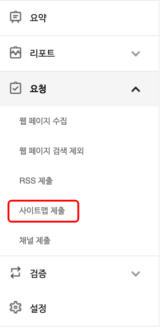 [요청] - [사이트맵 제출] 을 선택하신 후