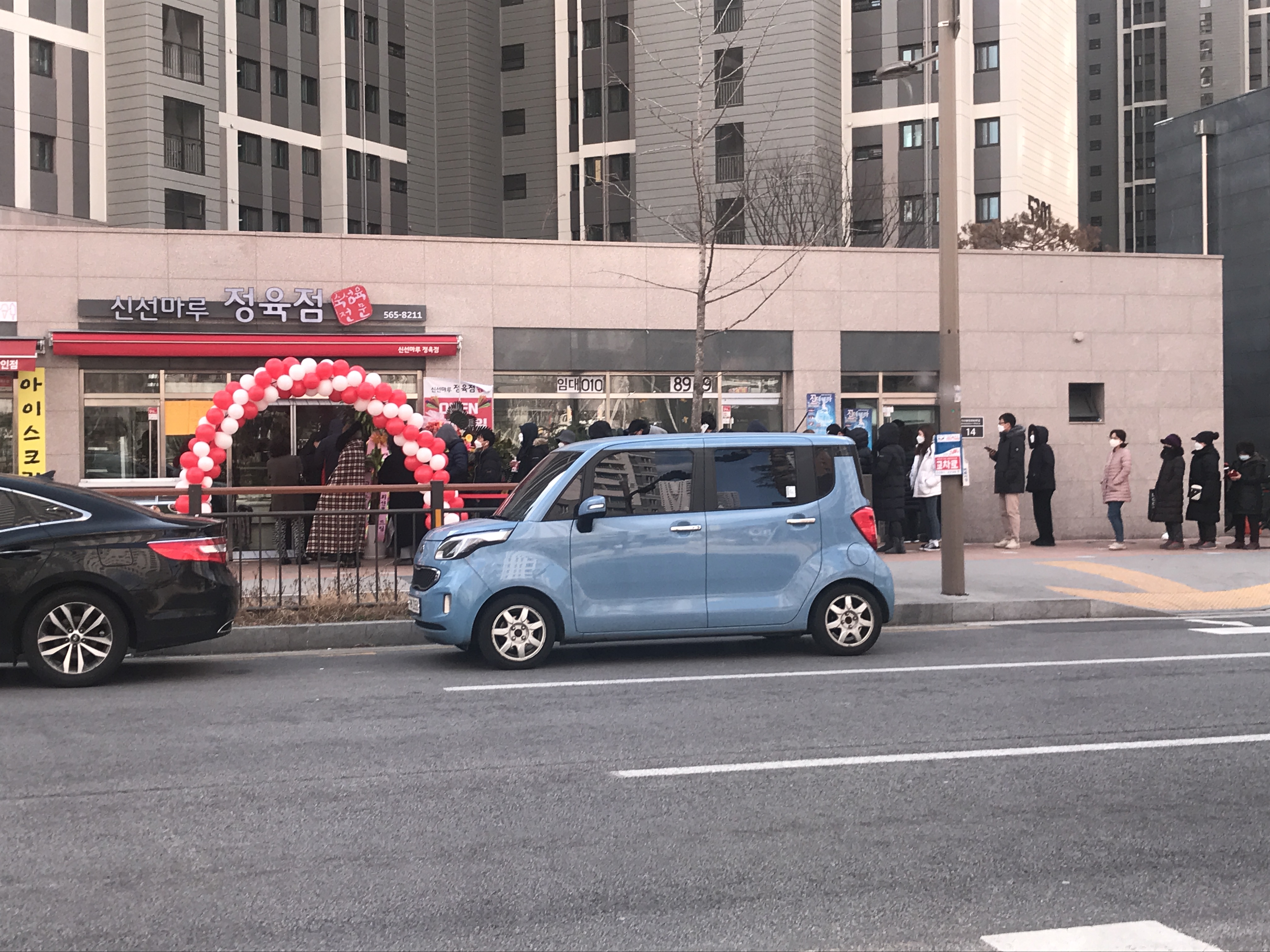 줄이 길죠....저는 그래도 저거 반쯤부터 줄 선거 같은데 1시간반 걸려서 고기를 샀습니다...#고기 좋아하시는 분들 많아요!ㅎㅎ