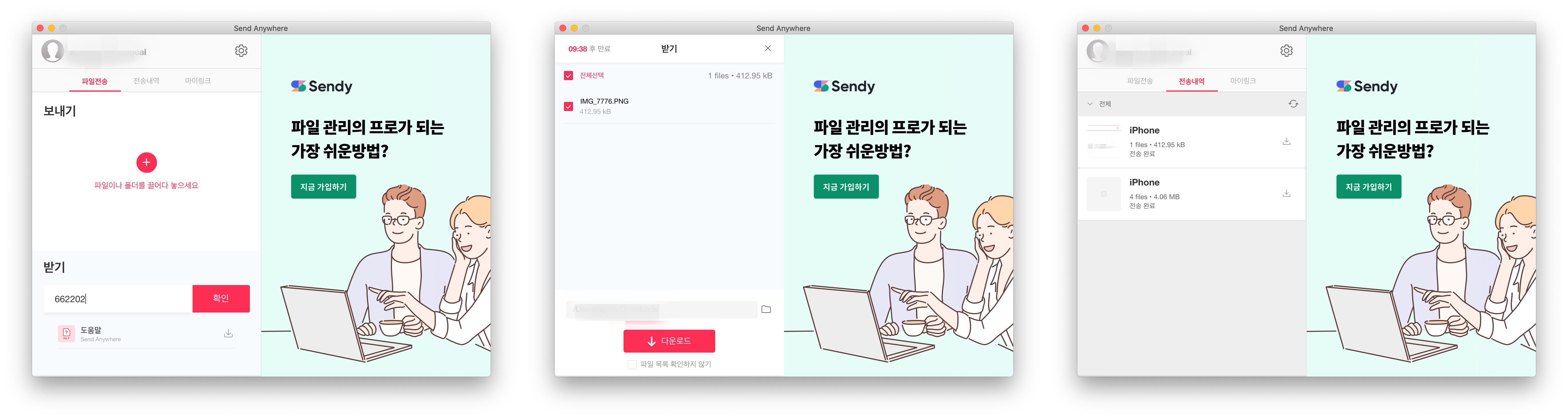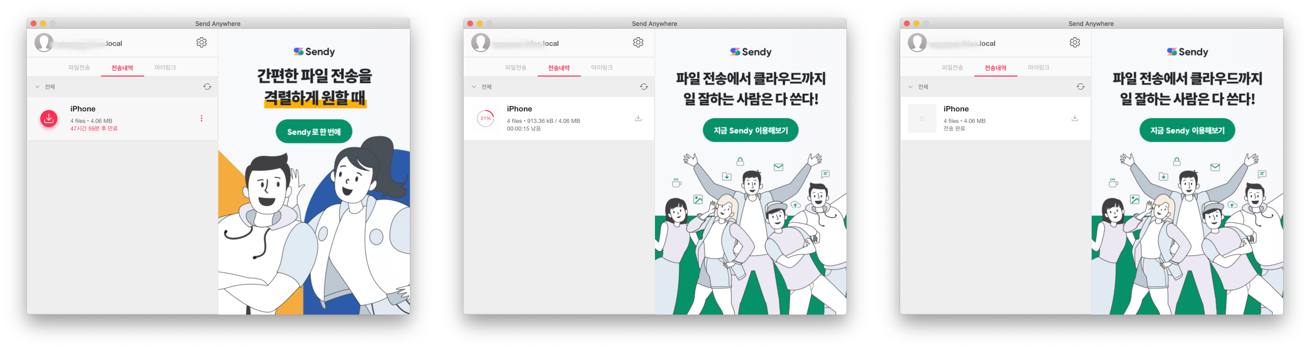 제 아이폰과 아이맥에서 각각 sendanywhere 를 실행시켰습니다.