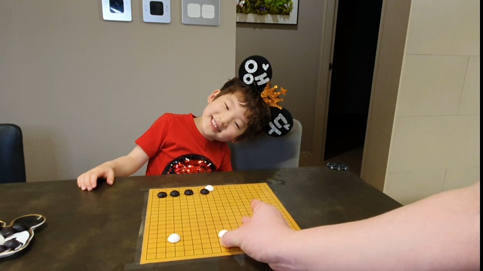 아빠와의 알까기 대결이 시작 됐어요.ㅎ