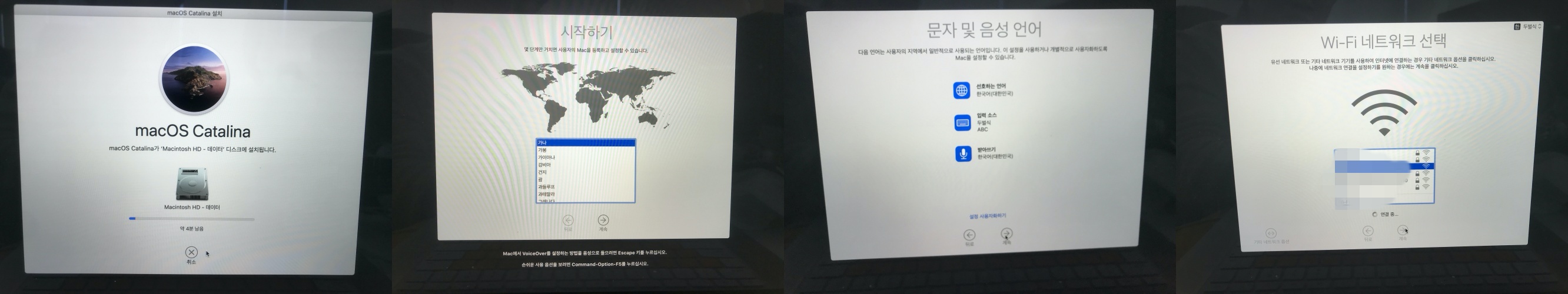 어느 드라이브에 설치할 것인지, 어느 나라인지, 어떤 언어를 사용할지...어떤 wifi 환경을 사용할지...