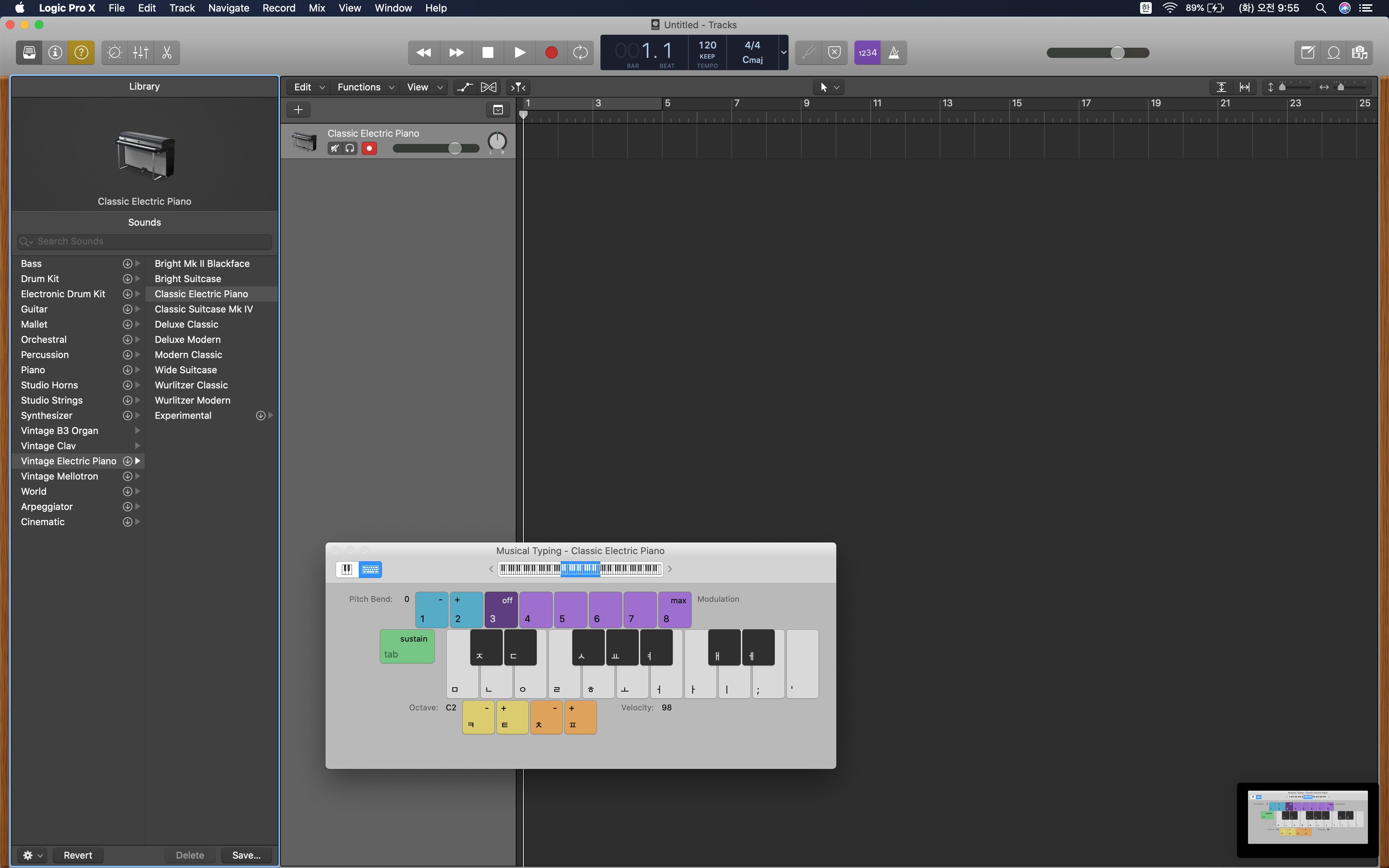 #피아노 를 선택하니 이렇게 초기 화면이 구성되네요! 여기까지 #로직 #LogicProX 를 설치해봤는데요.