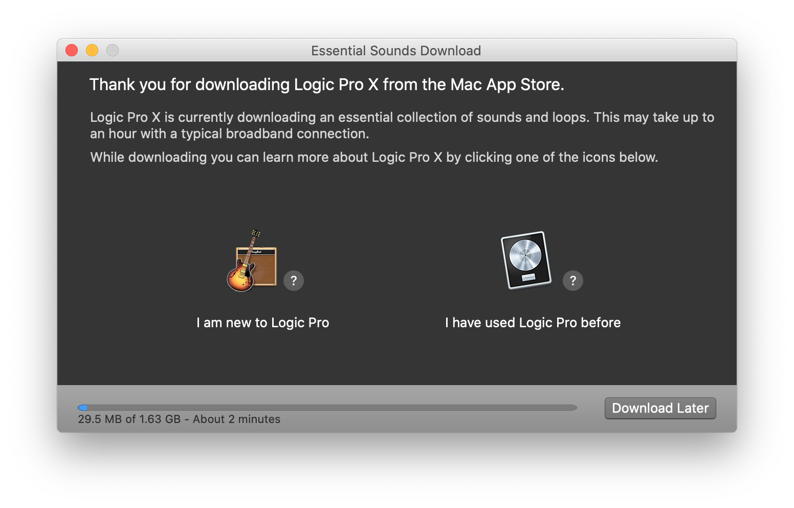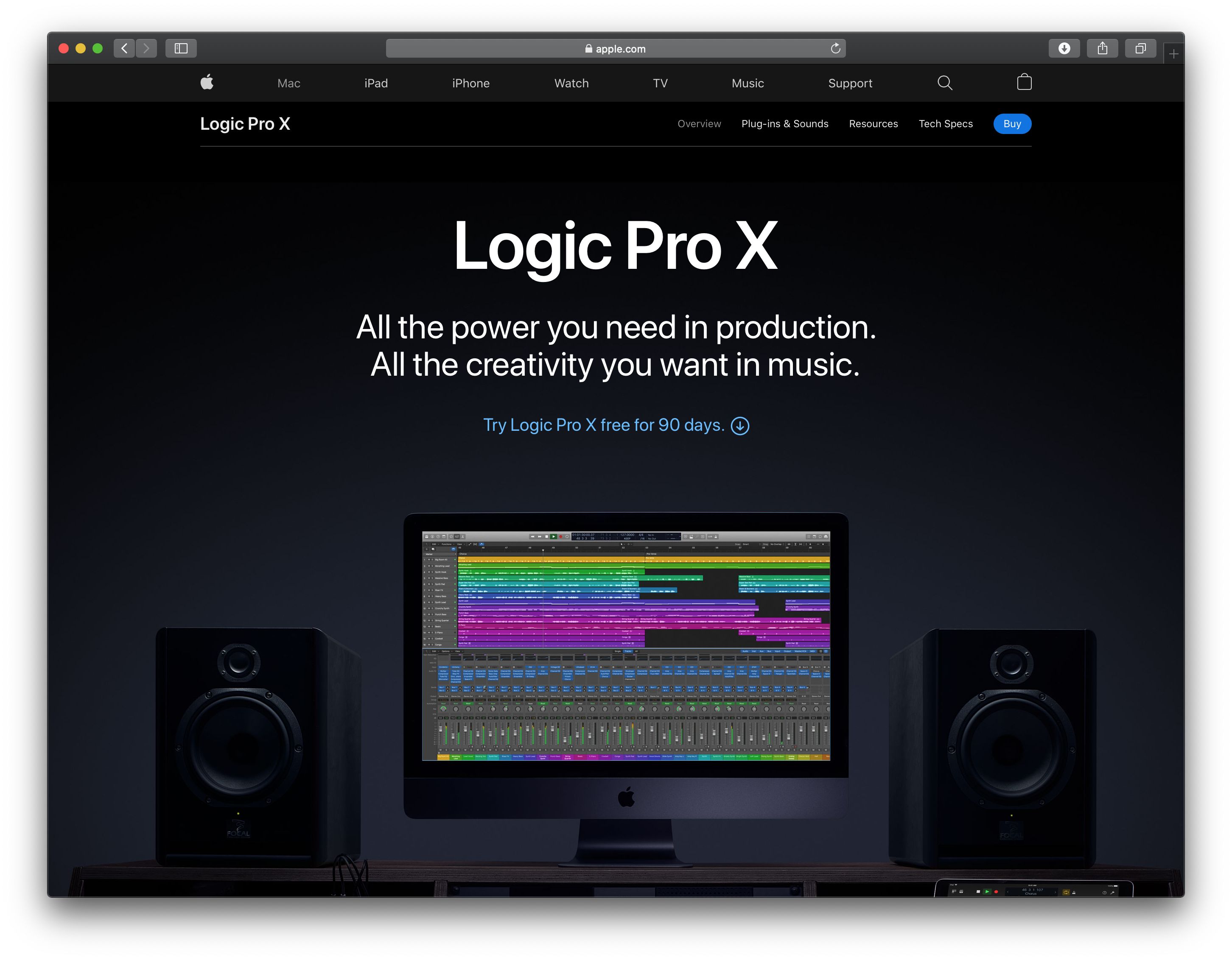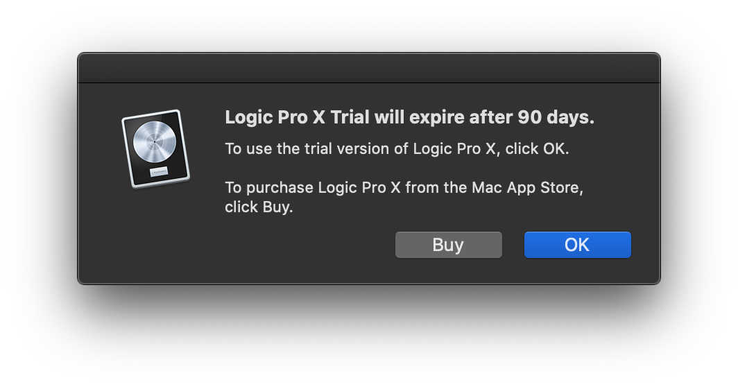 중간에 'Try Logoc Pro X free for 90 days." 텍스트가 보이시죠? 클리클릭~