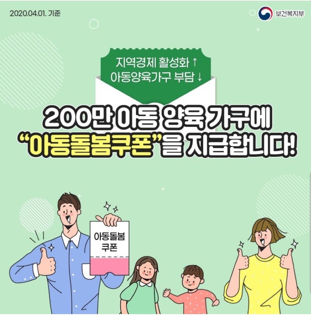 안녕하세요:) 오늘 날씨가 정말 좋네요~ 미세먼지도 없고 바람도 안불고 기온도 높아요. 매일 날씨가 오늘같이 좋았음 좋겠어요~ 조금전에 아이돌봄쿠폰이 도착했다고 문자가 왔어요. 저는 만7세미만 아이가 2..