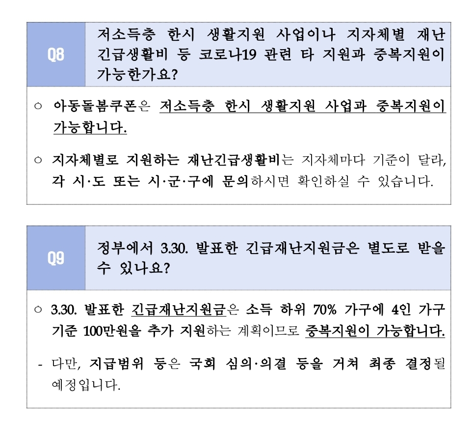 [코로나19 극복을 위한 아동돌봄쿠폰 지급안내 문자]
