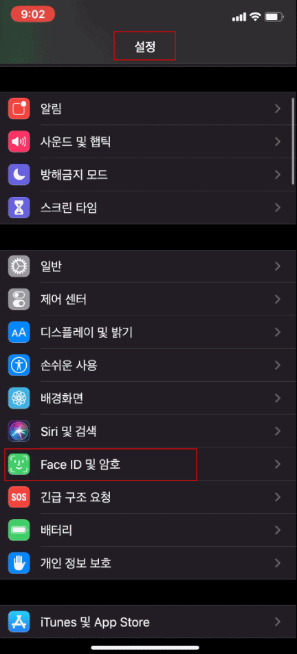 그리고 이제 아이폰을 키셔서 [설정] - [Face ID 및 암호] 항목을 선택하세요.