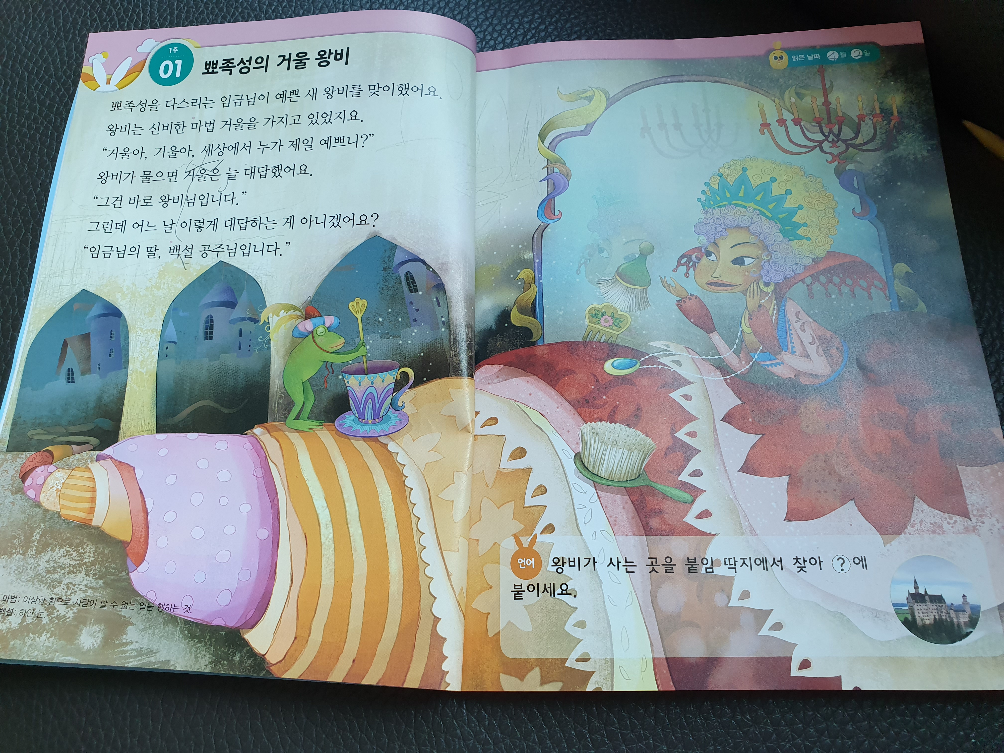 아직은 한글을 완벽하게 읽는게 아니라 엄마가 한줄 읽고 아이가 한줄 읽고 이런식으로 공부를 한답니다.