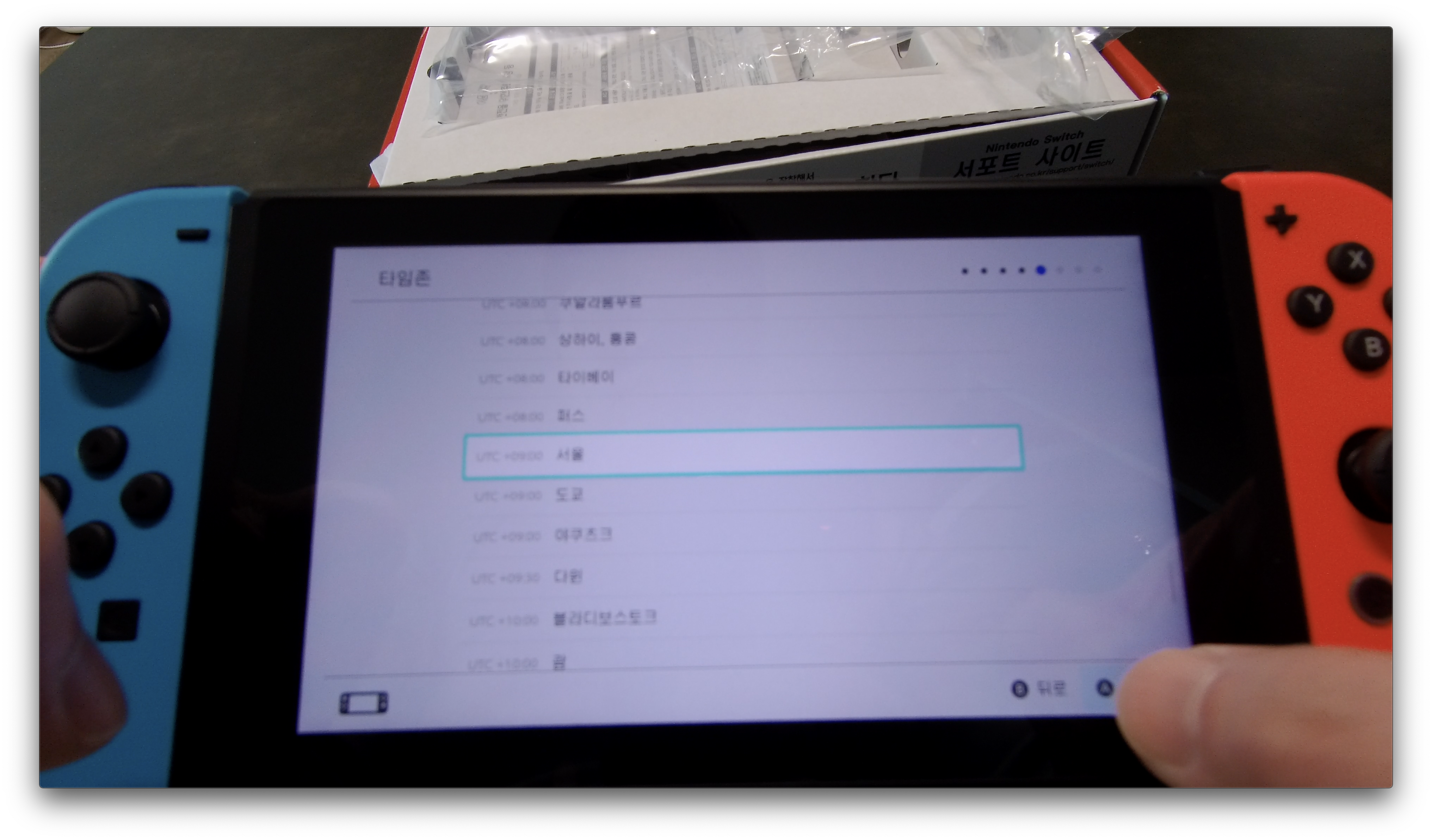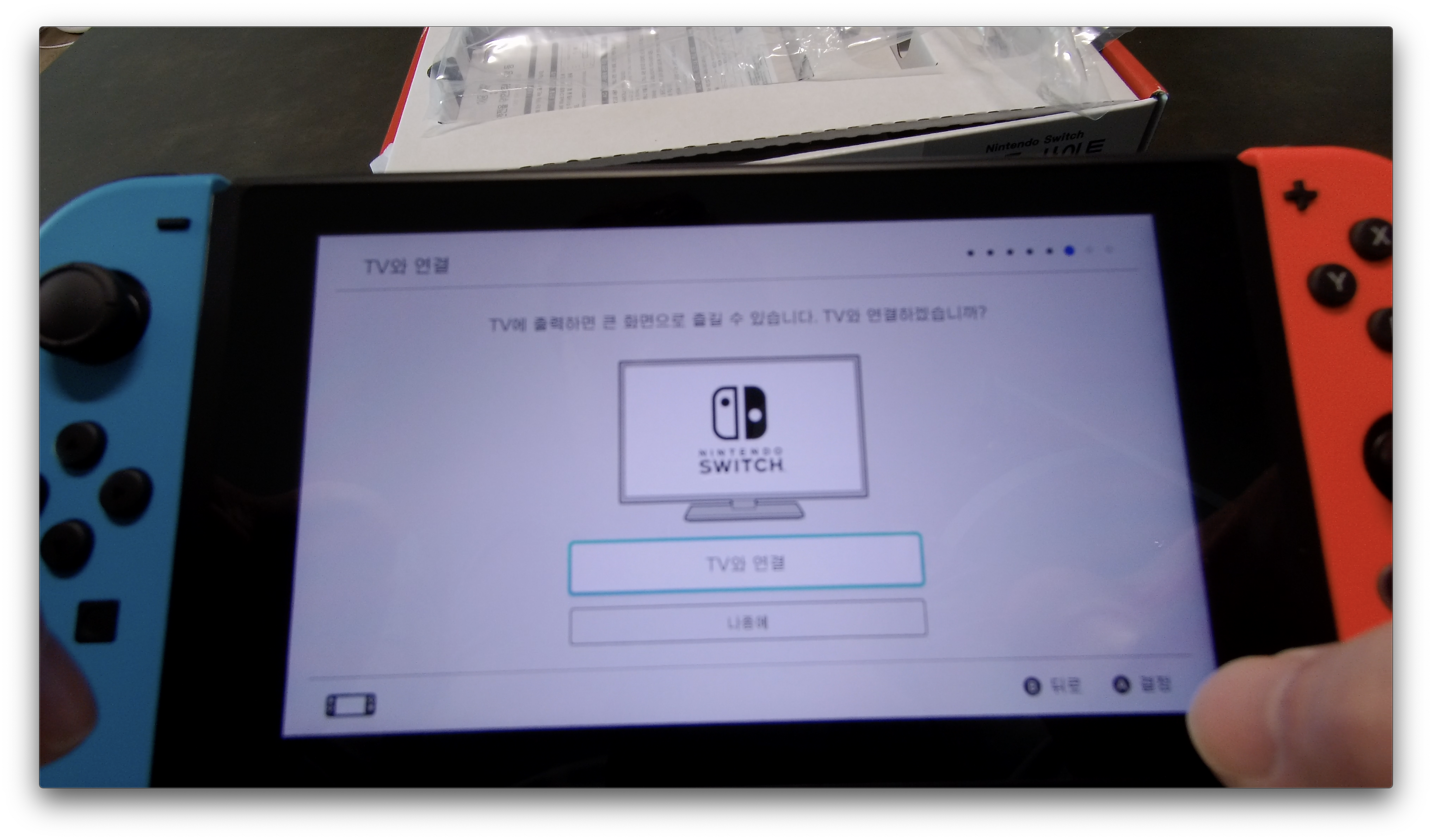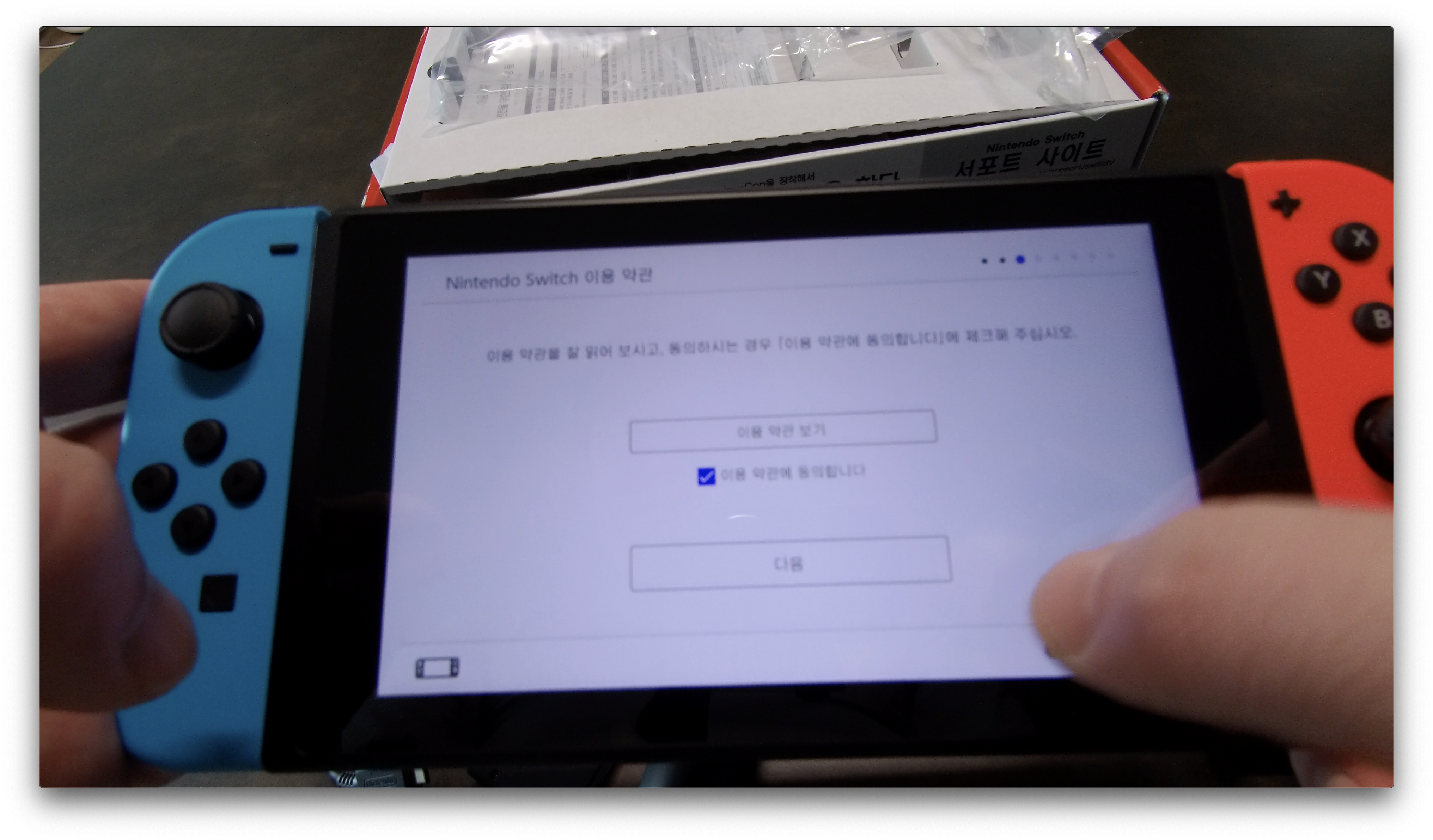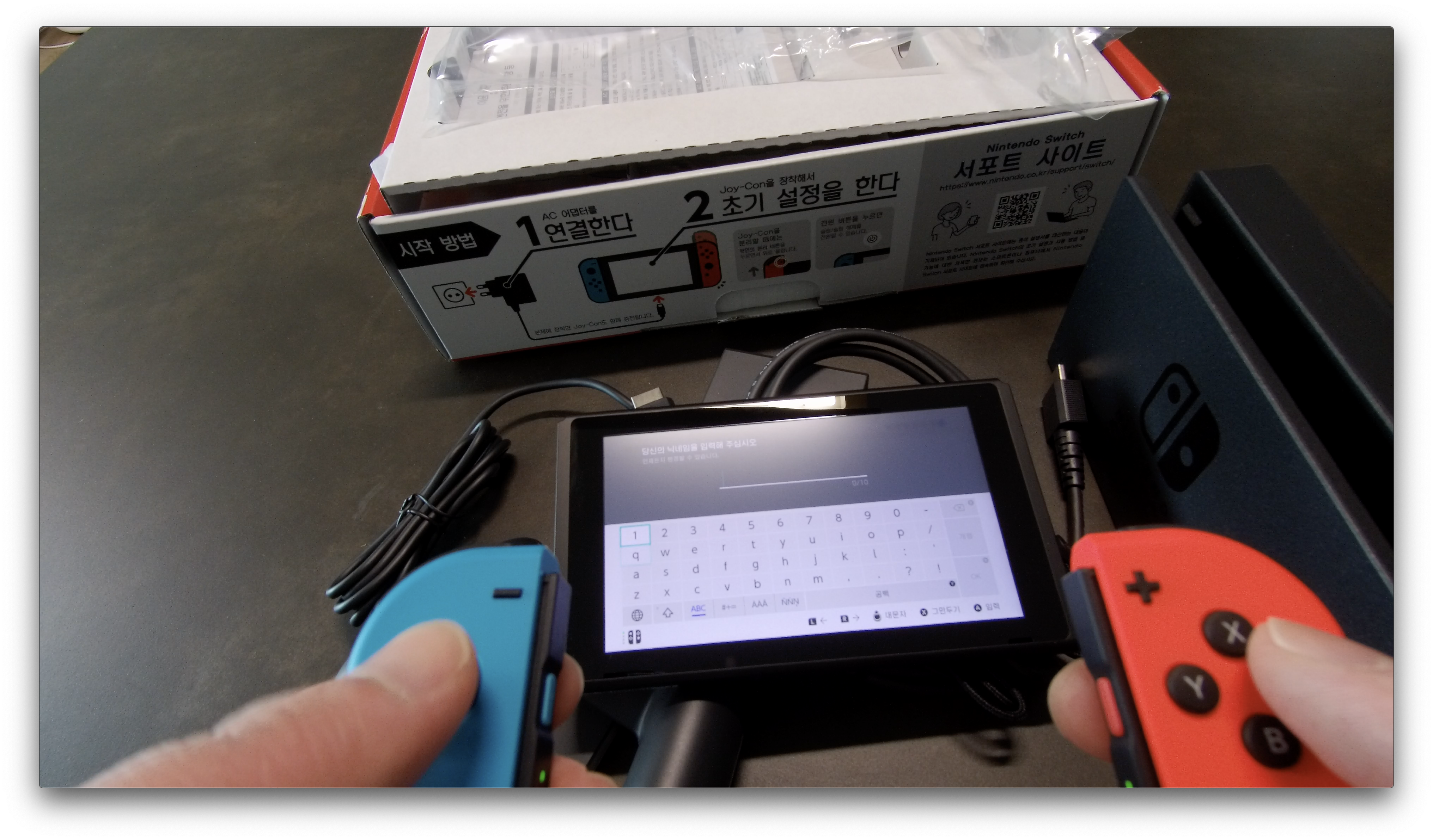 조이콘의 버튼으로 다음을 누르라고 시킵니다. 닌텐도스위치 니가 갑이다!!