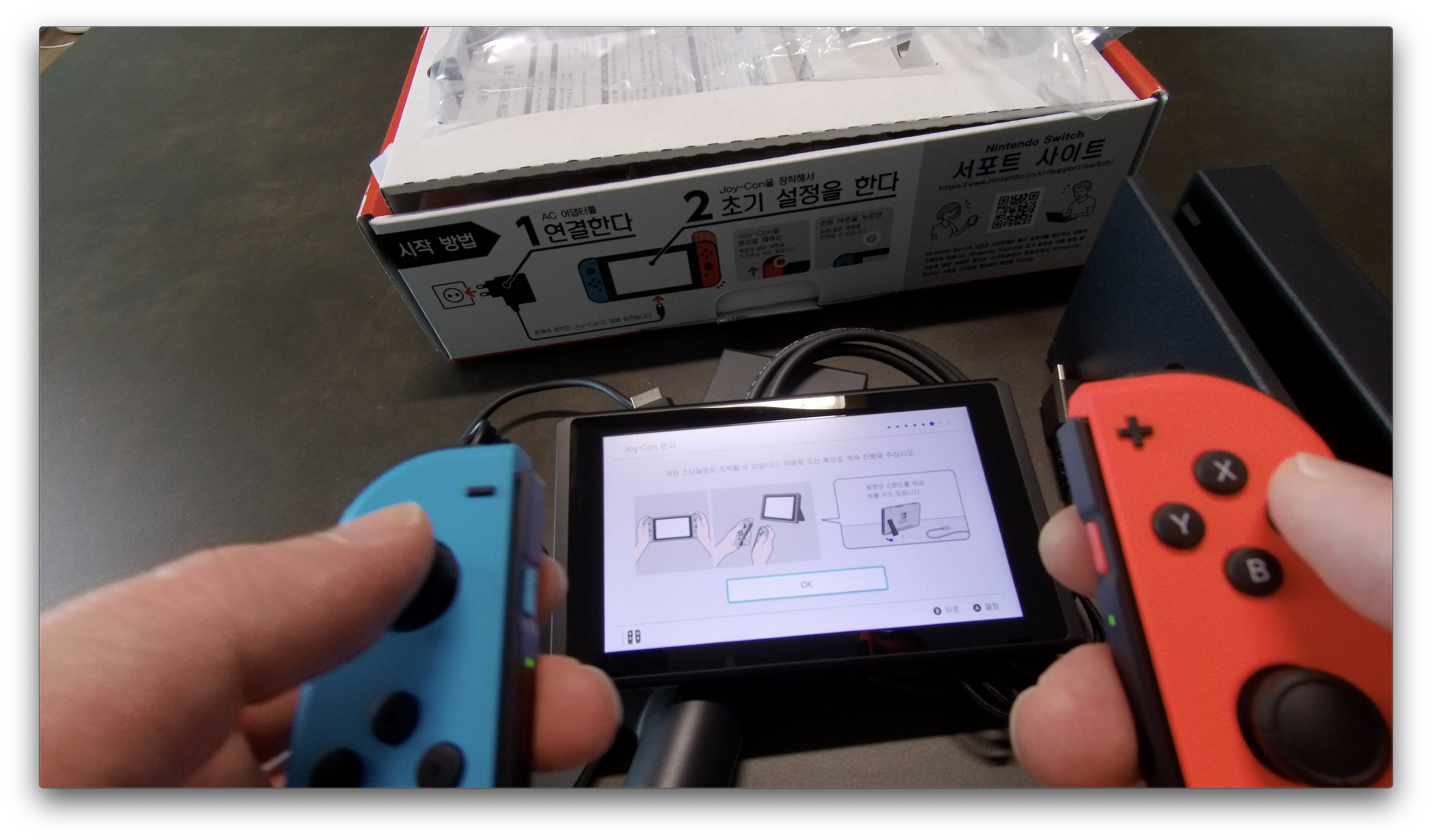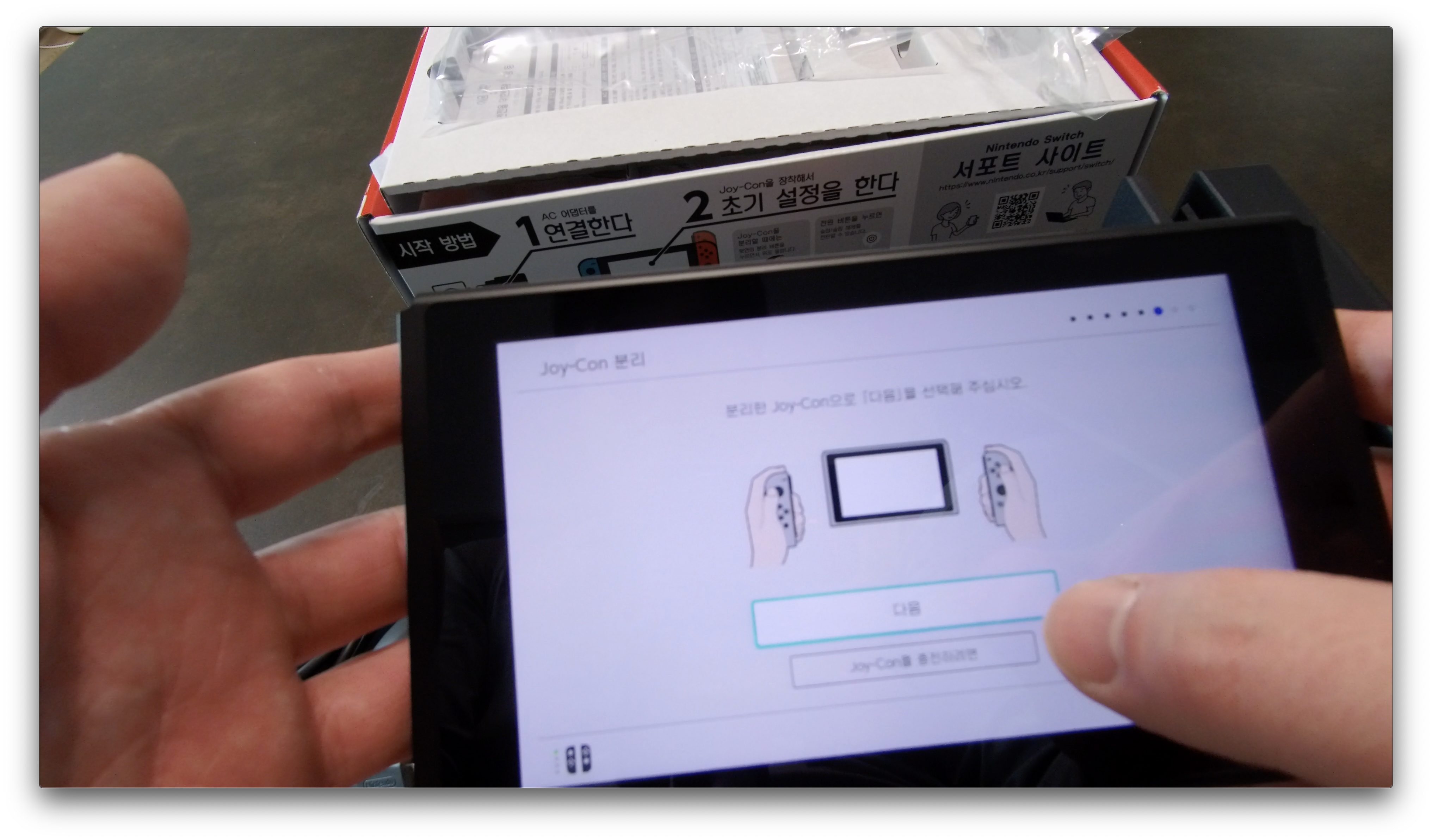조이콘을 분리해보라고 시킵니다. 뭔 게임 한번 할라는데 일케 할게 많은지ㅡㅡ