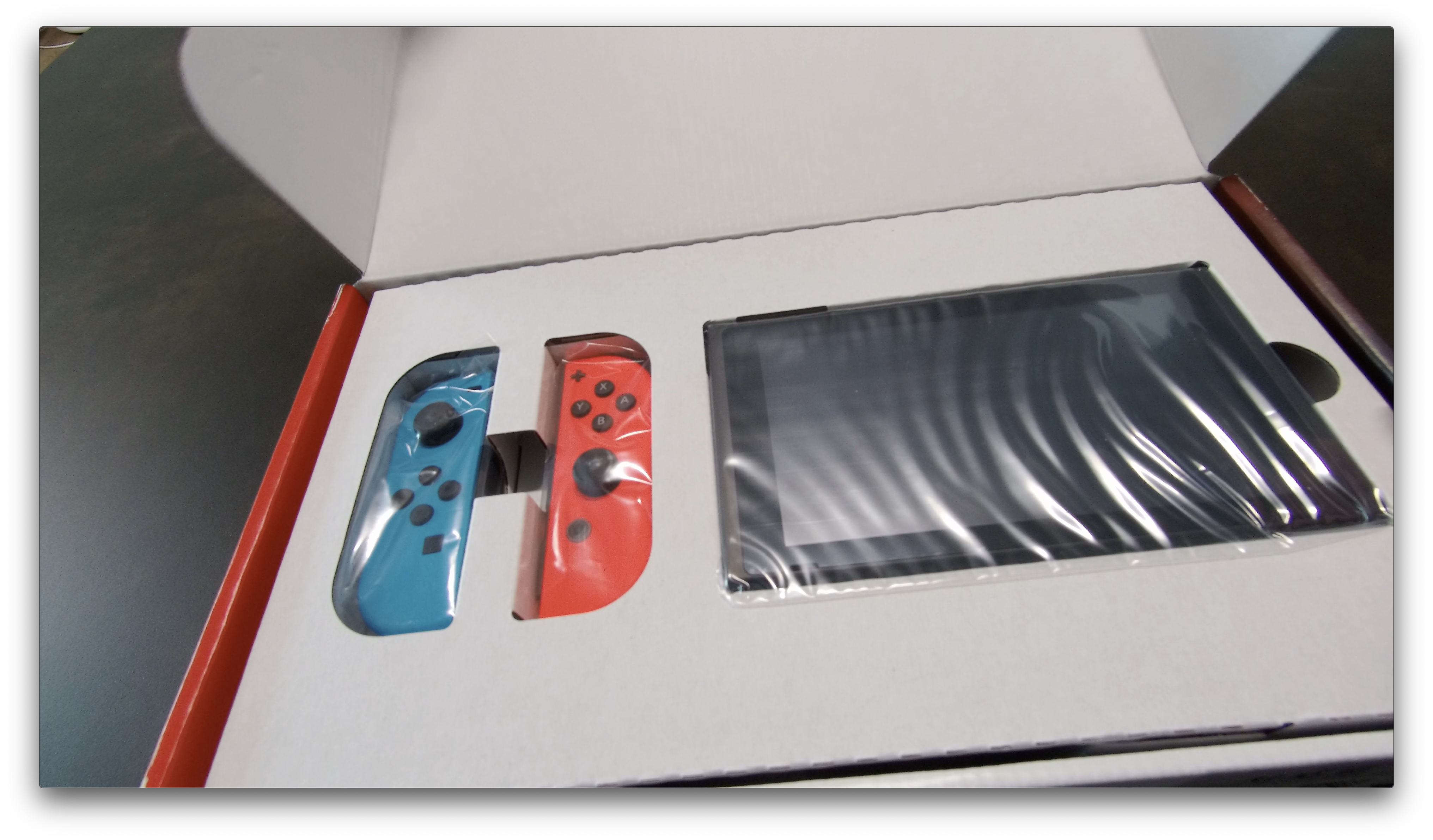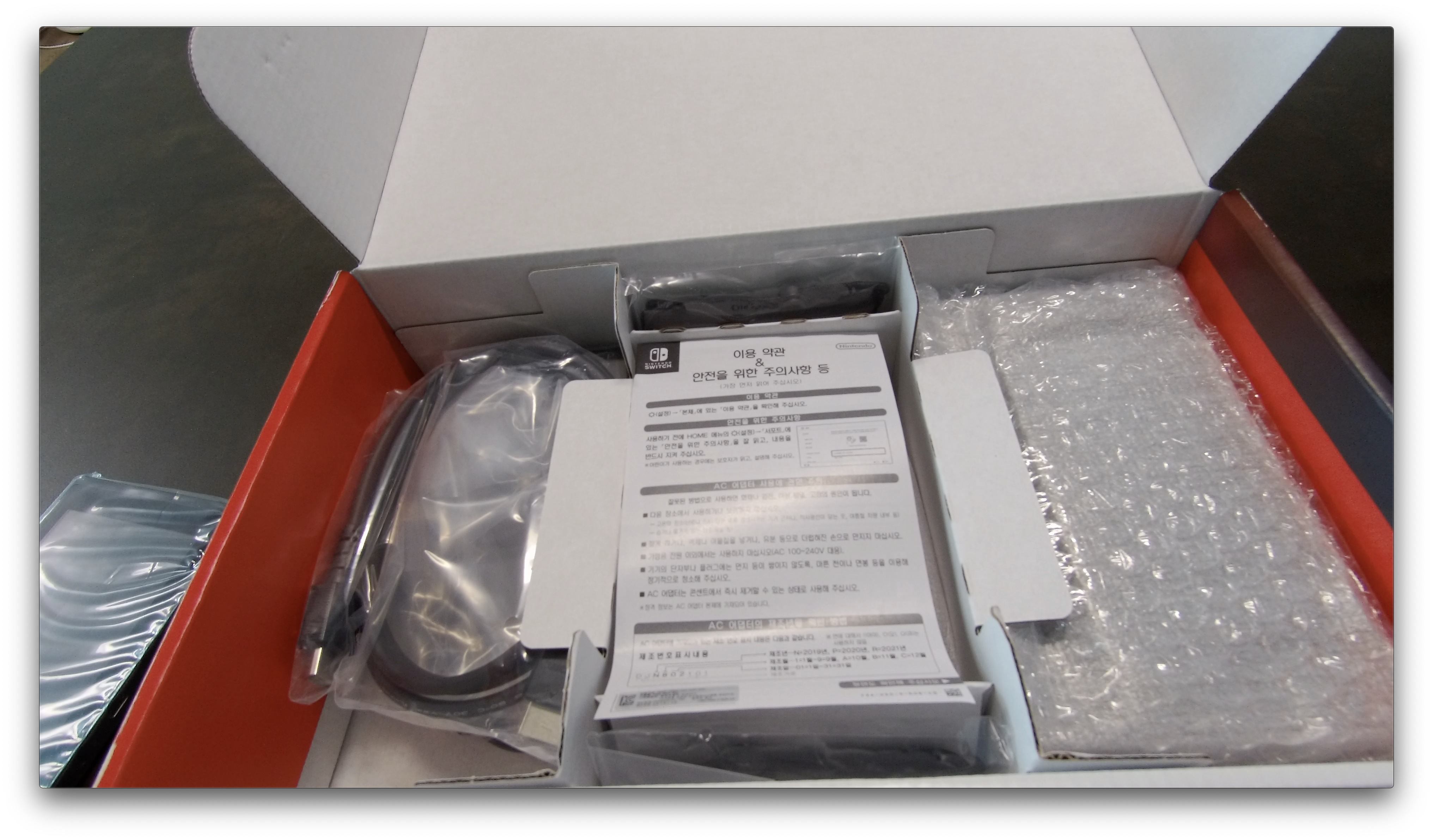 개봉해보니 종이로 포장재가 아주 튼실하게 쌓여져 있습니다. 뚜껑열면 바로 보이는 본체와 조이콘 2개 (좌/우)