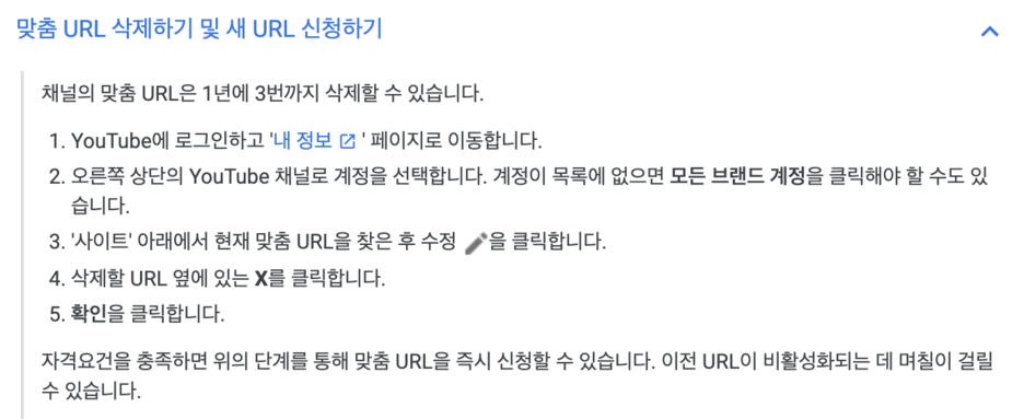 하단엔 이미 신청한 맞춤 URL을 삭제하고 새로 신청하는 방법도 나와있으니 참고하세요~