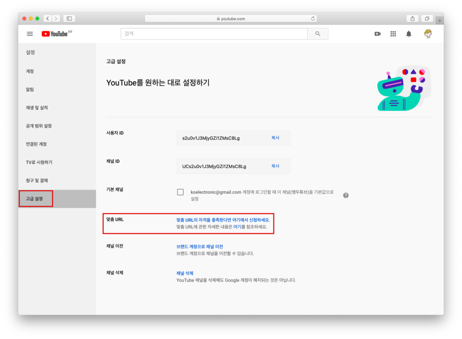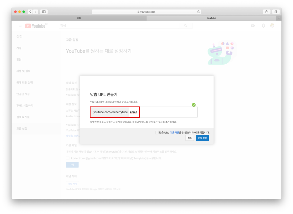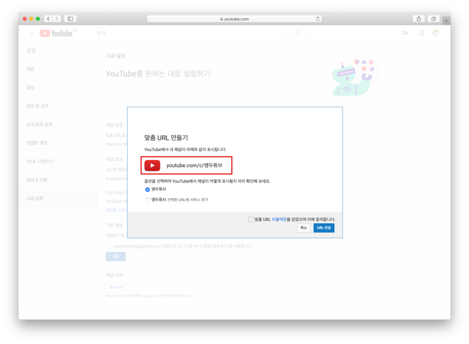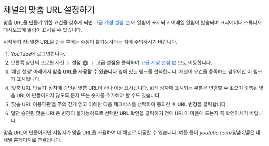 맞춤 채널 URL 만들기 - YouTube 고객센터