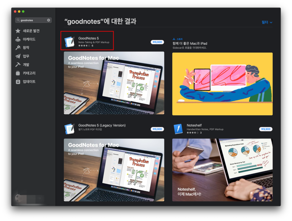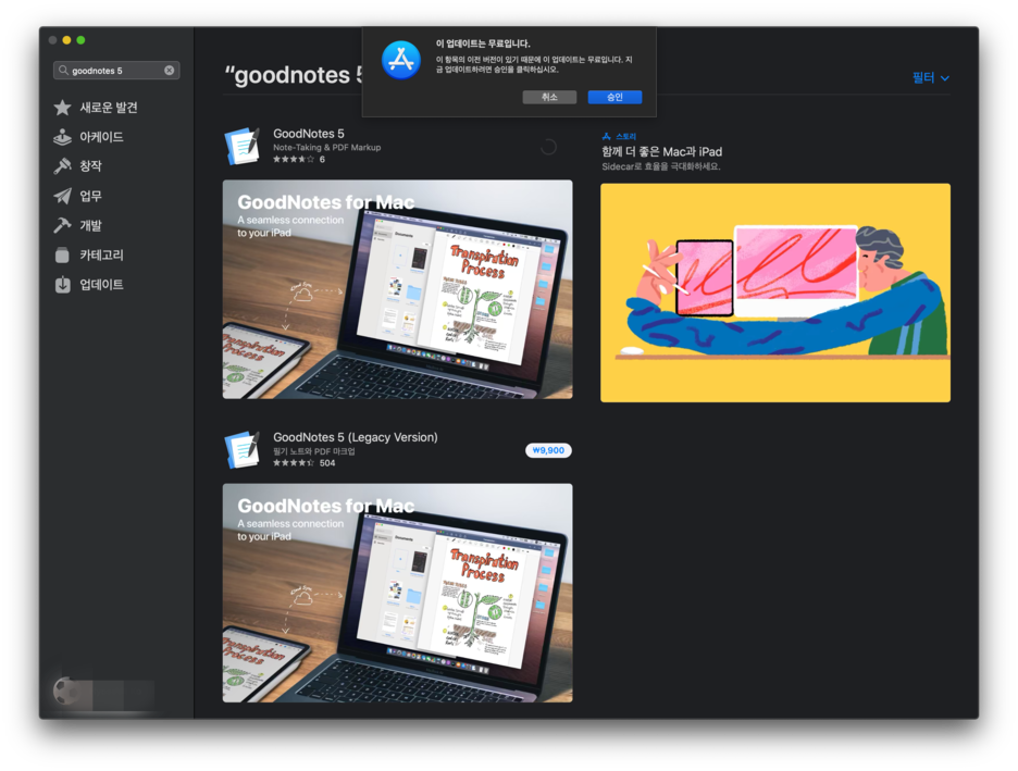 지금 맥의 앱 스토어에 올라와있습니다!! 굿노트 5 버전!! (legacy version 아니에요!!)