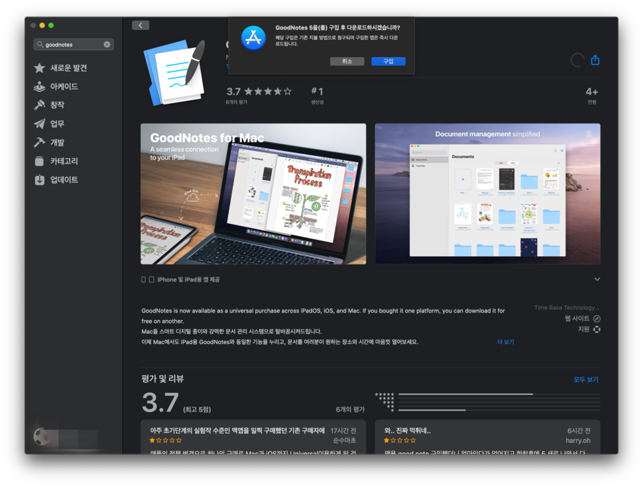 별개의 맥용 굿노트라고 해요!! 이거 누르시면 아이패트에서 사용하시던 분들도 돈나온답니다!!!