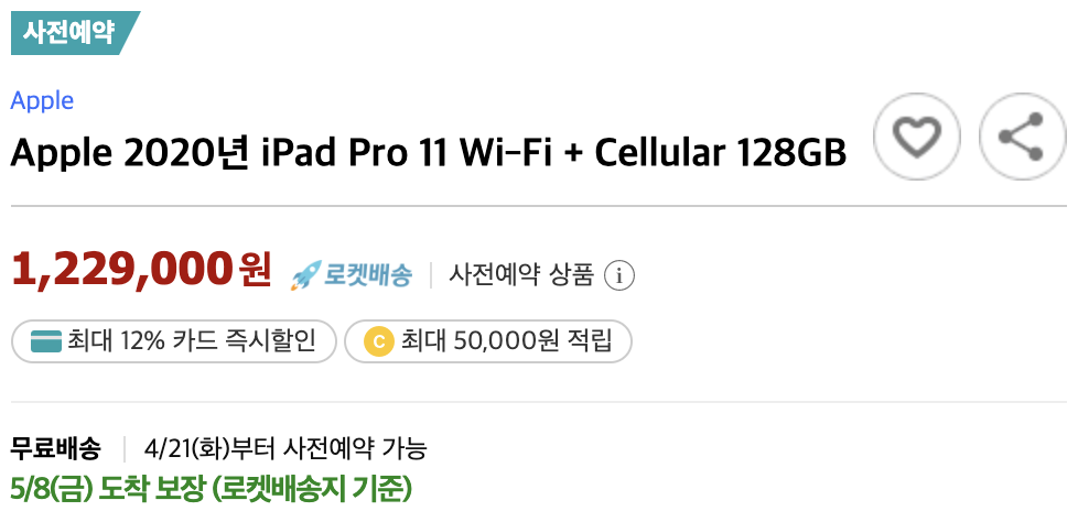 아예 사전 예약이라고 고지가 되어 있네요! 근데 도착은 5/8 보장으로 되어 있어 보다 빠르게 수령하실 수 있겠어요!