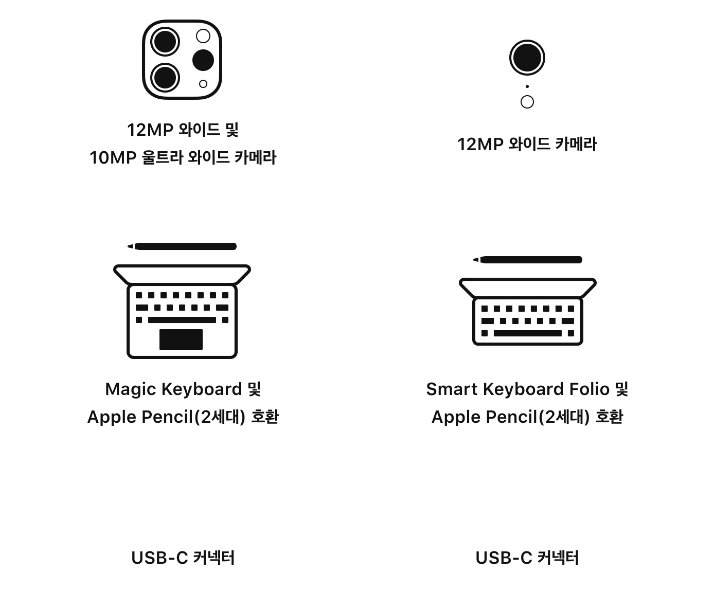 가장 큰 차이는 카메라인거 같습니다. 아이폰 11프로부터 선보였던 인덕션 카메라가 아이패드프로에도 적용되었네요.