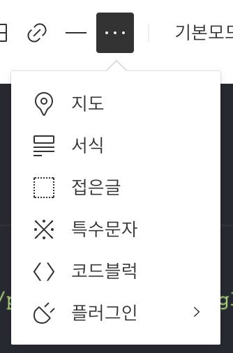 그리고 복사된 코드를 티스토리 편집기 창에서 가장 우측에 [기본모드]로 보이는 텍스트를 클릭하시면