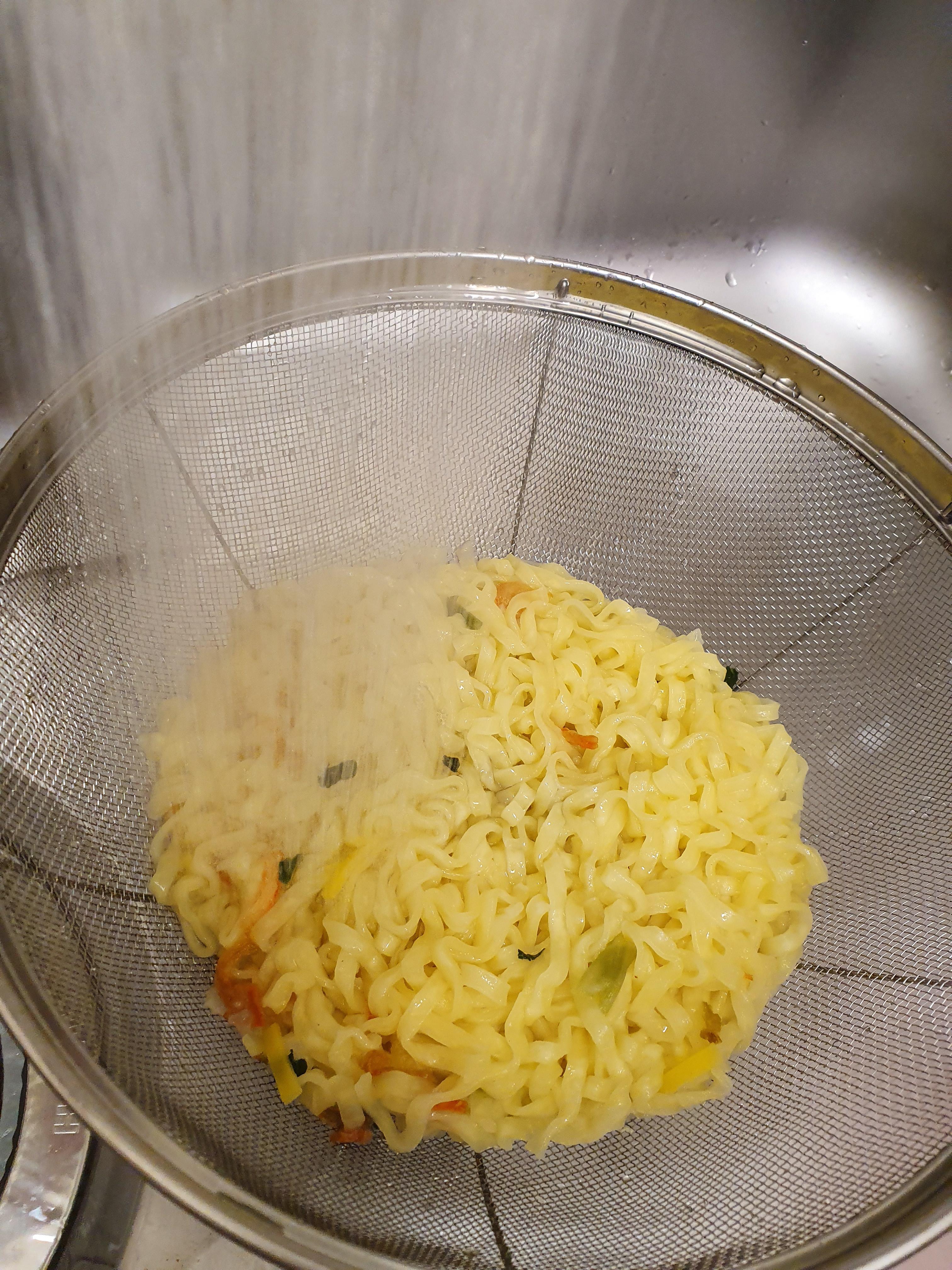 얼음물에 담가놓으면 면발이 더 탱글탱글 해진답니다.