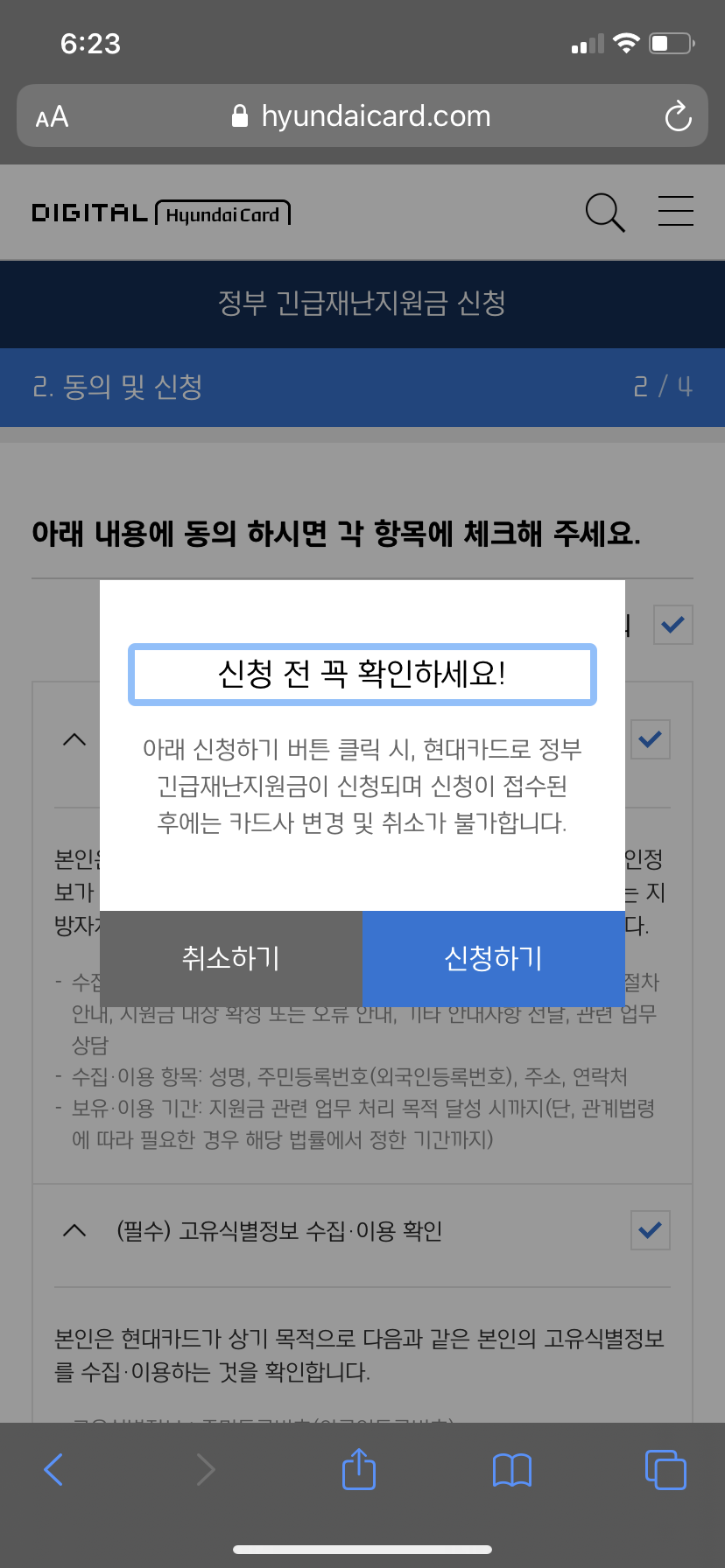 전 거기서...캡쳐 못한걸 알아채고 깜짝 놀라 뒤로뒤로 했는데...이미 모든 신청이 완료되었더군요...