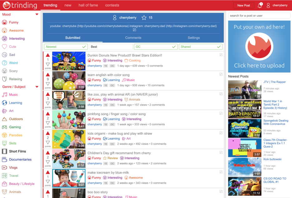 입장하면 요렇게 생긴 사이트에요. 그냥 동영상 공유 사이트 같죠? 어렵진 않아보여요