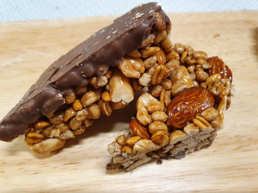 켈로그 에너지바도 밑에 초콜릿이 묻어 있어요.