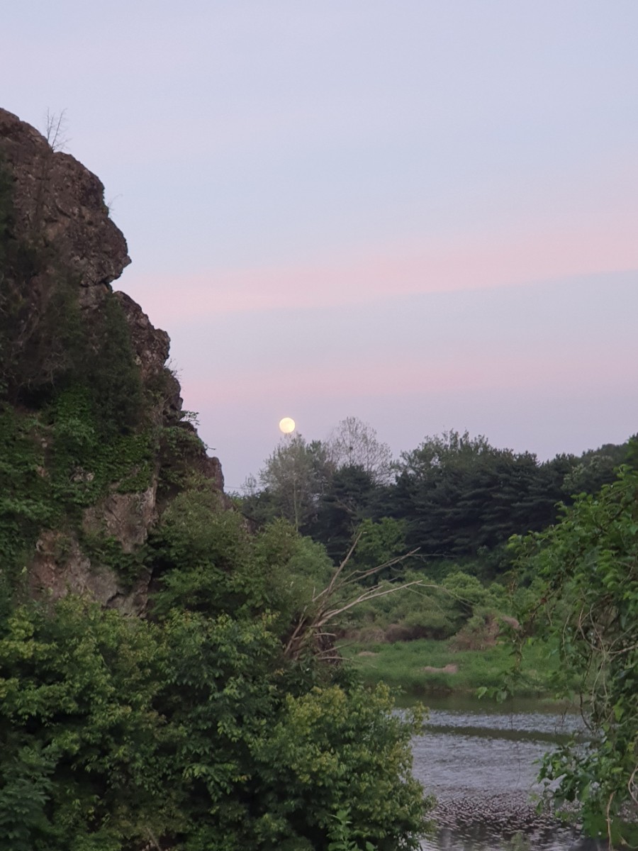 강과 산이 있는 자연 속에서 달을 보고 있으니 힐링 힐링~
