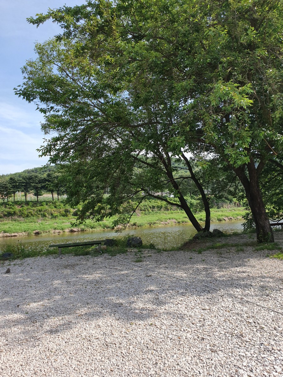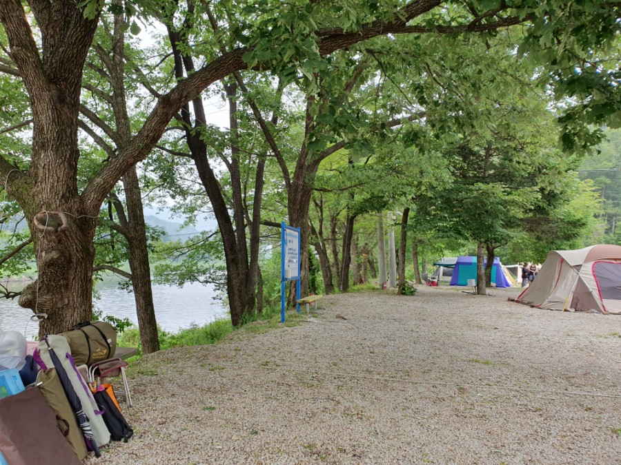 나무도 크고 웅장해서 그늘이 많이 있었고요. 지난주에 철원 화강 캠핑장은 사이트가 정말 좁았는데 오가리 캠핑장은 사이트 길이가 긴 편이 더라고요.