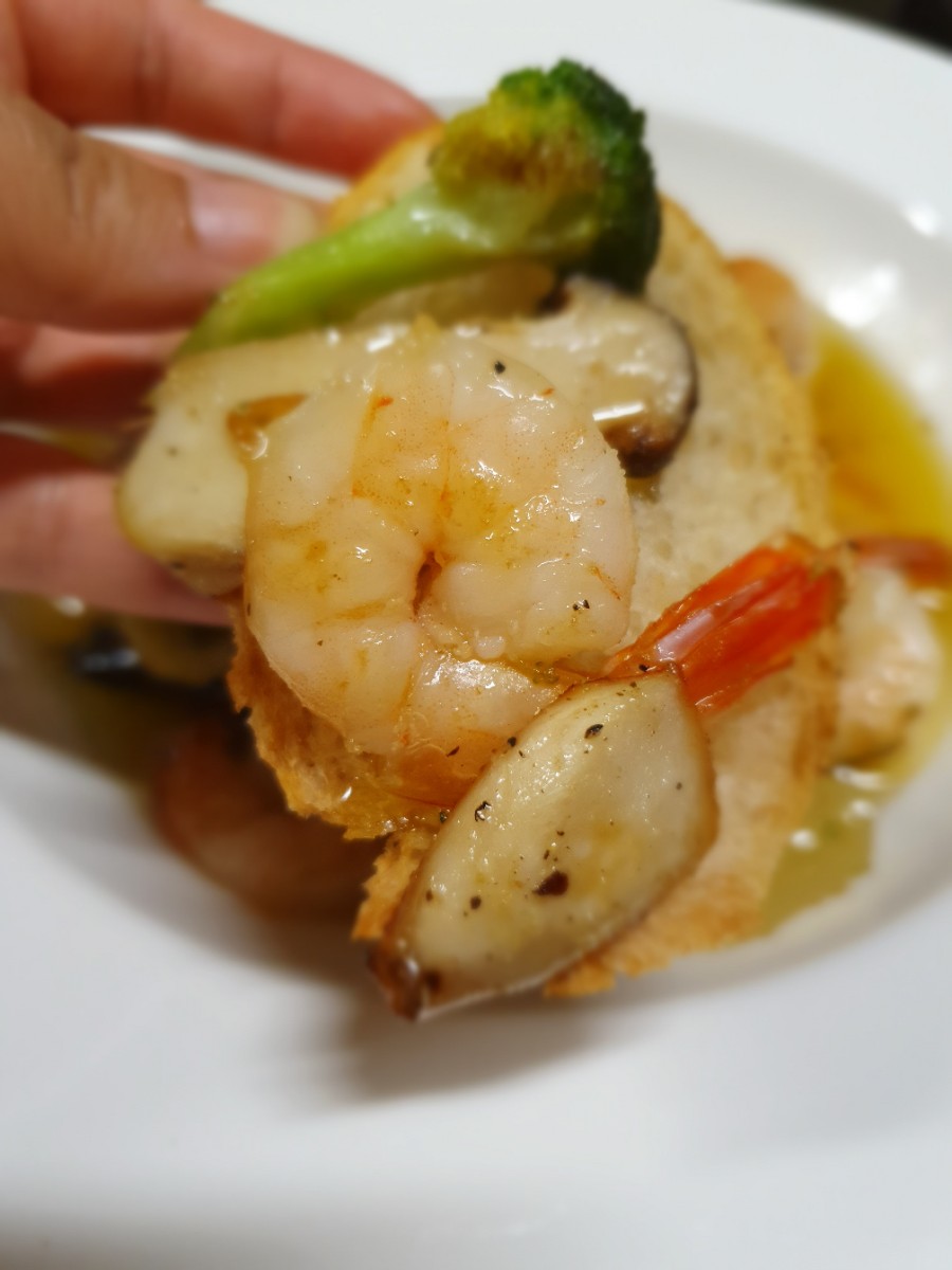 파리바게뜨에서 구매해온 바게트에 새우, 야채 넣고 올리브오일 푹~ 찍어서 먹어보면?