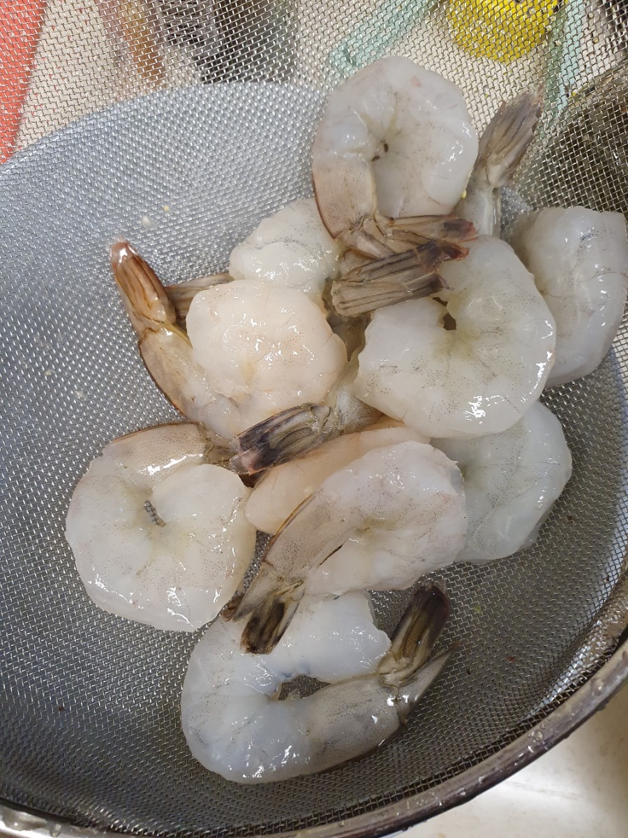 새우와 야채들은 헹궈줍니다.