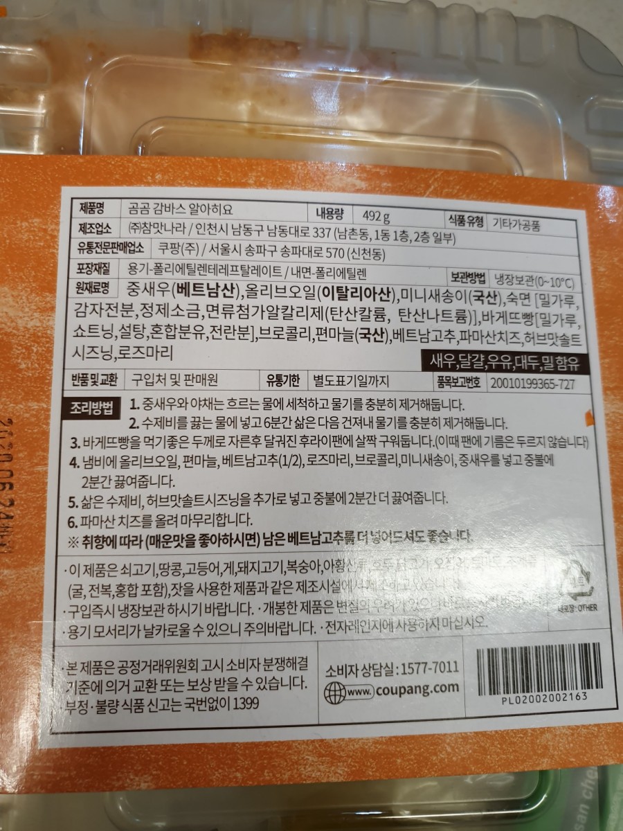 쿠팡 자체 브랜드 곰곰 감바스 입니다.