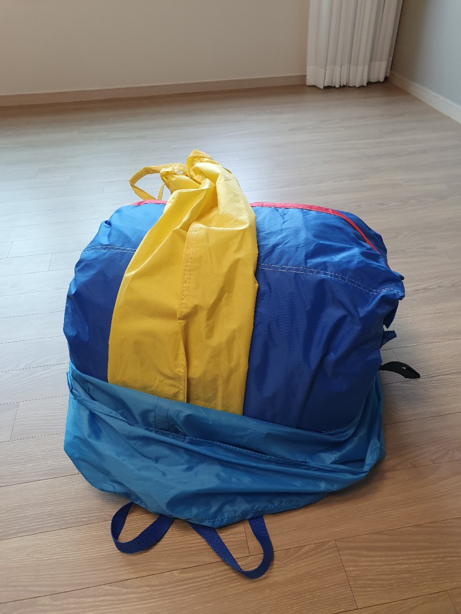 바람 넣기 전 사진인데 혹시 거실이 더 좁아서 못 펼칠까봐 걱정 했어요.ㅎ