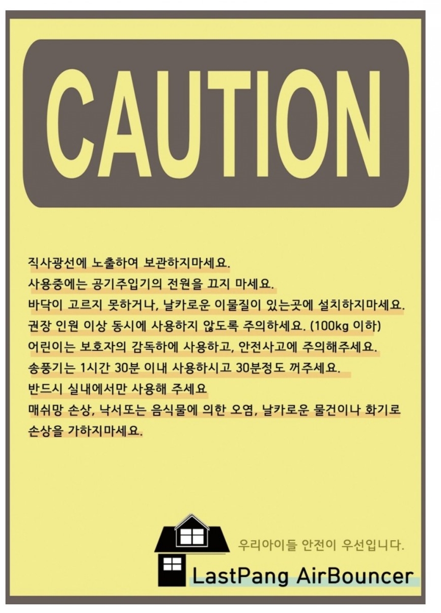 에어바운스 해당업체 블로그를 보니 확실하게 소독까지 하고 계시더라고요.