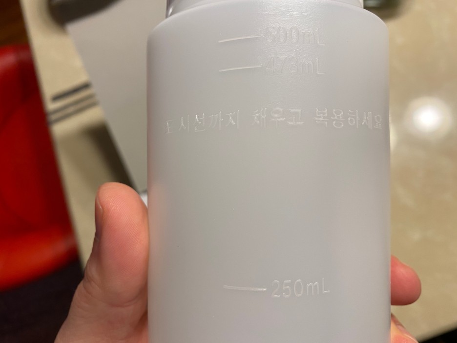 이제 500ml를 정확히 확인하고 물을 부워주면 되요.