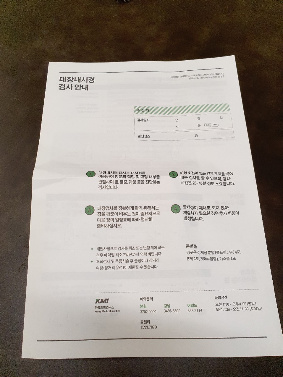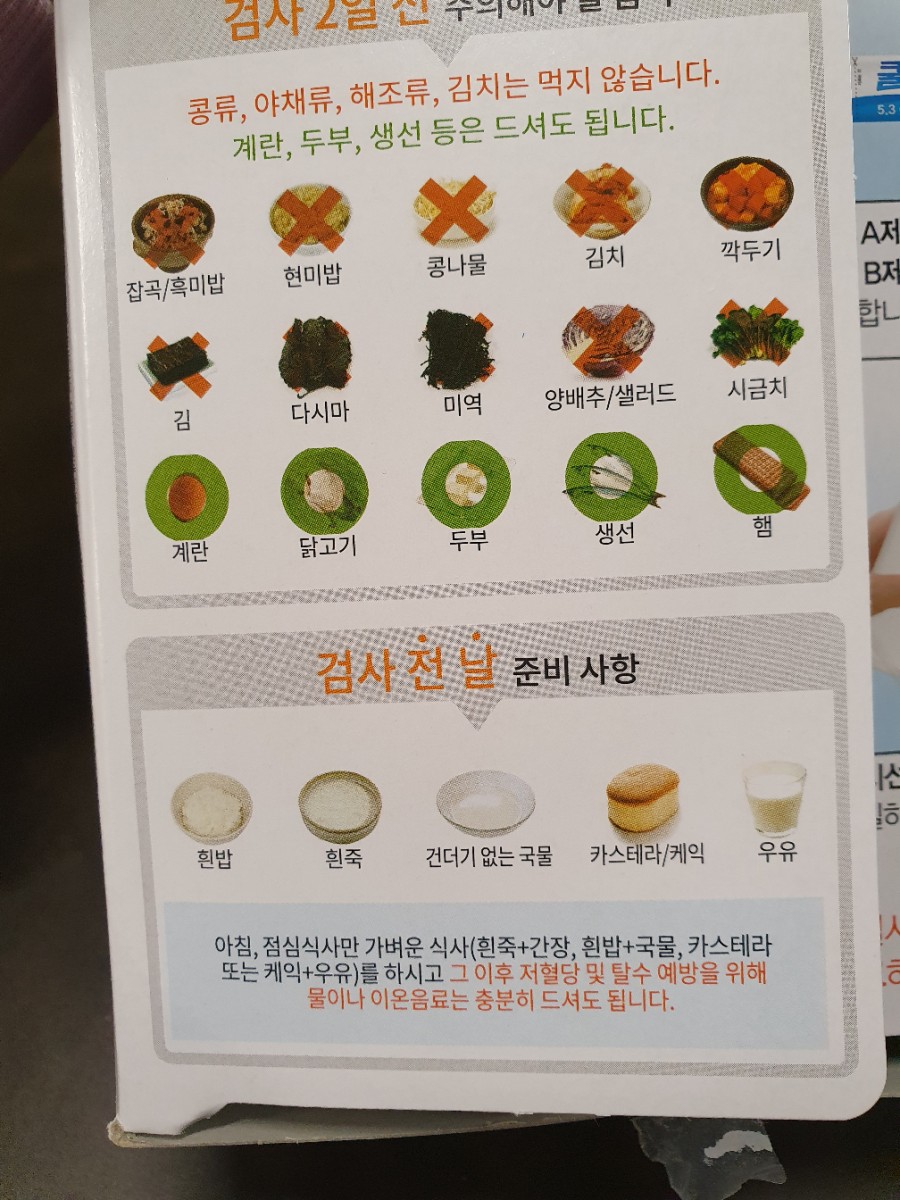 안내가 표지에 떡하니 적혀져 있네요. 검사 전날은 자극적인