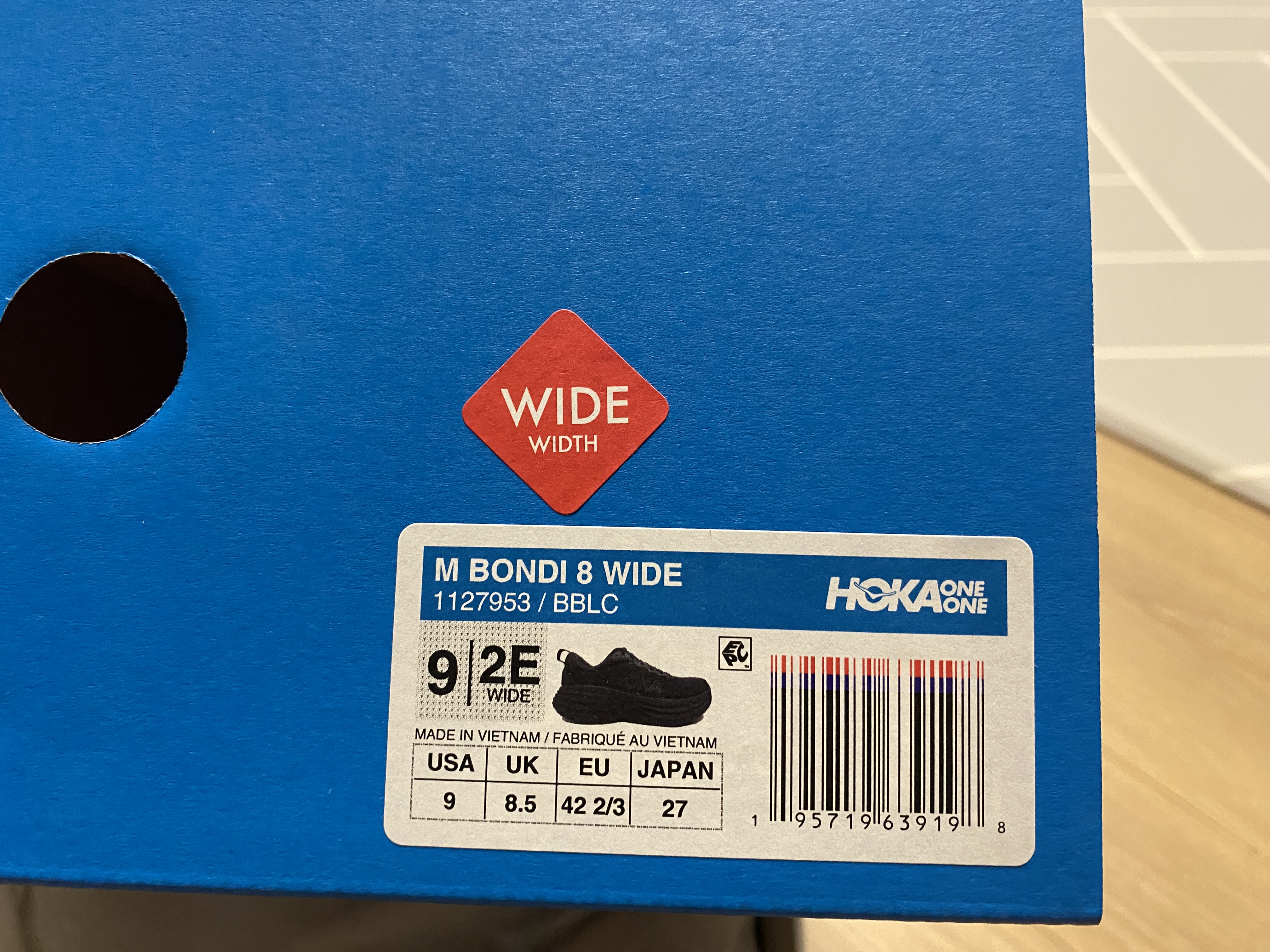 그래서 선택한 제품은 러닝화로 각광받고 있는 호카의 본디 8 제품이다. 발볼도 넓게 와이드 제품으로~