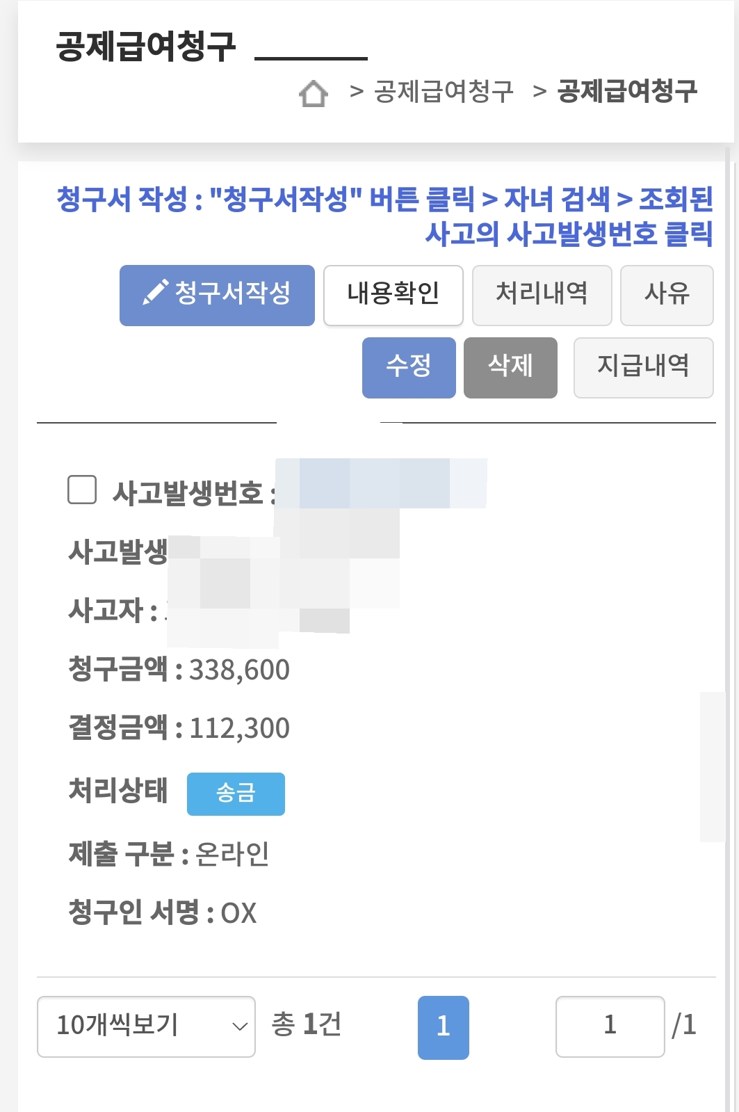 병원비가 총 338,600원이 나왔는데 112,300원만 나왔네요.